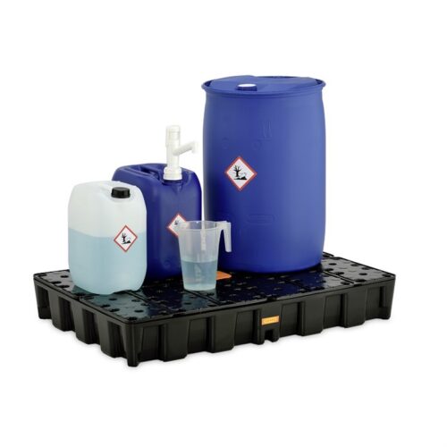 Wysoka jakość i wytrzymałość wanny daje gwarancję długiej żywotności w warunkach przemysłowych. Przeznaczona do składowania olejów, chemikaliów (również tych agresywnych). Paleta spełnia wymagania dyrektyw europejskich i zaostrzonych przepisów dotyczących magazynowania substancji na wannach wychwytowych.